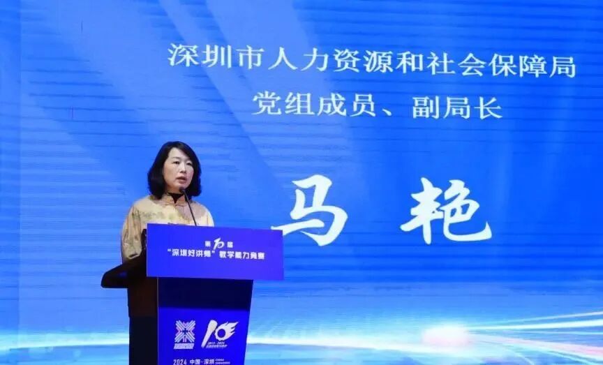 现场,深圳市职业培训机构联合党委第一书记朱虹代读了广东省职业培训和技工教育协会会长、广东省人力资源和社会保障厅原厅长欧真志为组委会发来的贺信。欧会长表示,“深圳好讲师”办赛以来,顺应时代发展,紧扣时代要求,不断发展,形成了特色,办出了品牌。深圳市人力资源和社会保障局党组成员、副局长马艳对本次竞赛成功举办表示祝贺。她从深圳职教的发展背景,以及十年来“深圳好讲师”的办赛历程进行回顾,点明了竞赛在培养技工教育和职业培训人才方面的重要作用,有利于进一步推动产教融合,为深圳制造业强市奠定坚实的人才保障。